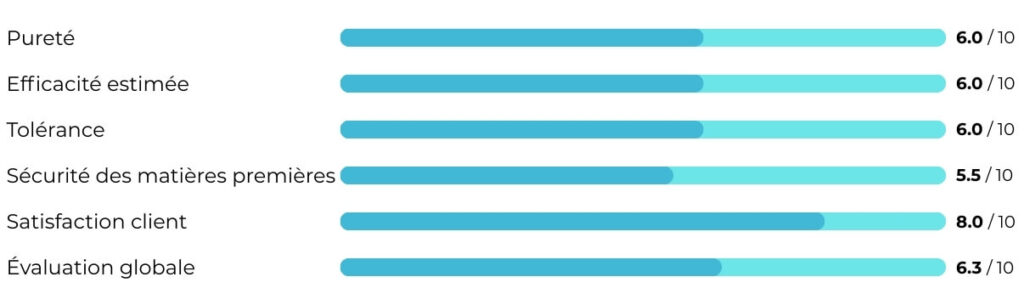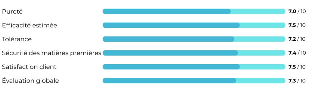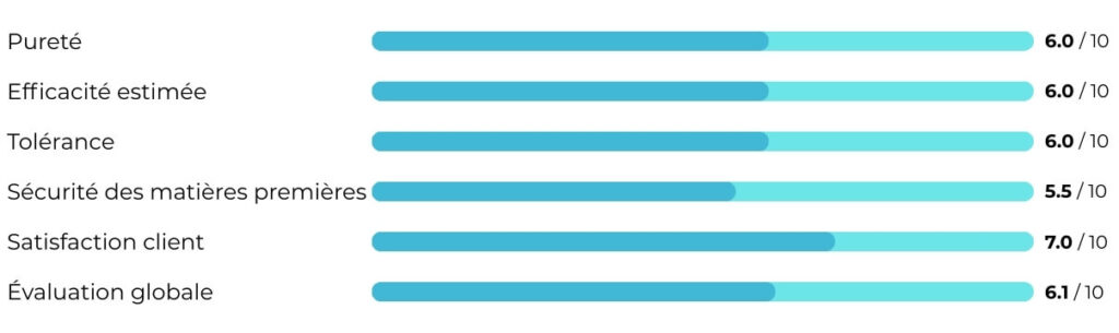 Le prix avantageux constitue un point positif – pour les utilisateur·rice·s disposant d’un budget limité, le produit peut représenter une option d’entrée. Cependant, il faut être conscient qu’il implique des compromis importants en matière de pureté, d’efficacité et de transparence.
